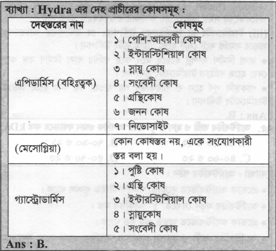 কোষের গঠনগত ভিন্নতা ও ক্রমবিন্যাস দেখা যায় কোন পর্বের প্রাণীত? Option A: পরিপেরা , Option B: কর্ডাটা , Option C: আর্থোপ্রোডা, Option D: নিডারিয়া, correct answer is: নিডারিয়া