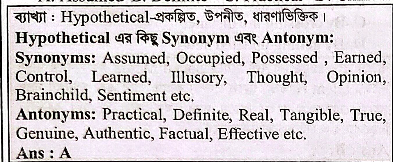 Identify the correct synonym of the word `Hypothetical`?