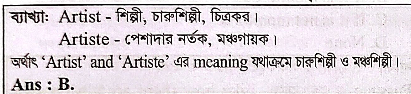 Correct Answer is: চারুশিল্পী ও মঞ্চশিল্পী