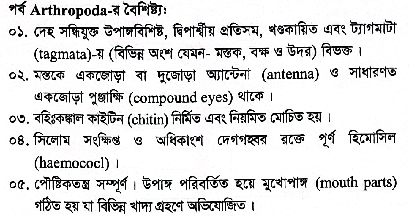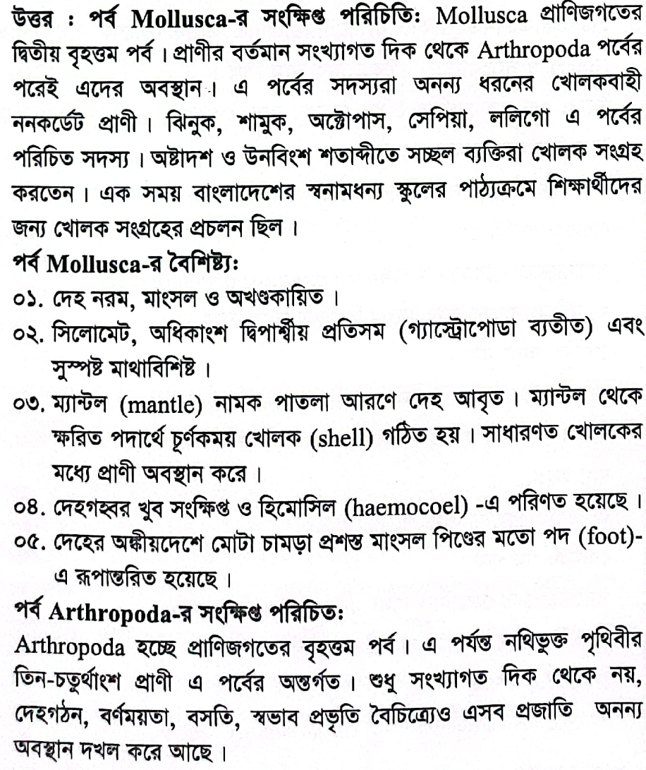 Mollusca ও Arthropoda পর্বের 5 টি করে বৈশিষ্ট্য লিখ।
