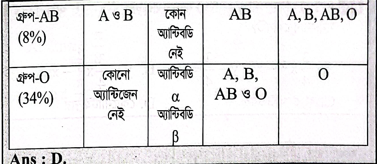 `O` রক্তের গ্রুপভুক্ত একজন ব্যক্তি নিচের কোন গ্রুপের সদস্যের নিকট হতে রক্ত নিতে পারবে না?