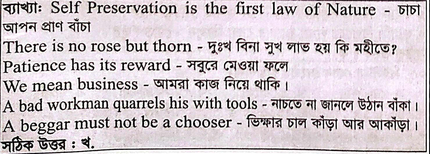 Self-preservation is the first law of Nature.` -ইংরেজী ভাষার এ বচনটির প্রায় অনুরূপ বাংলা প্রবচন-