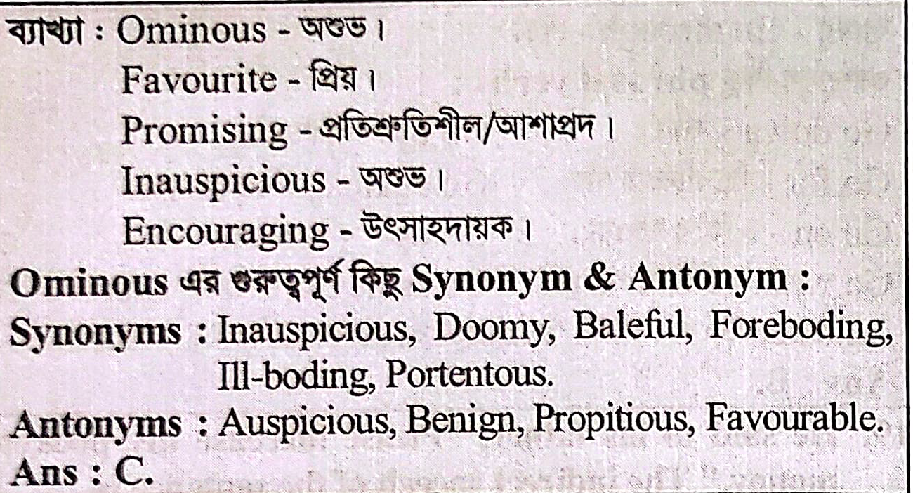 Correct Answer is: inauspicious