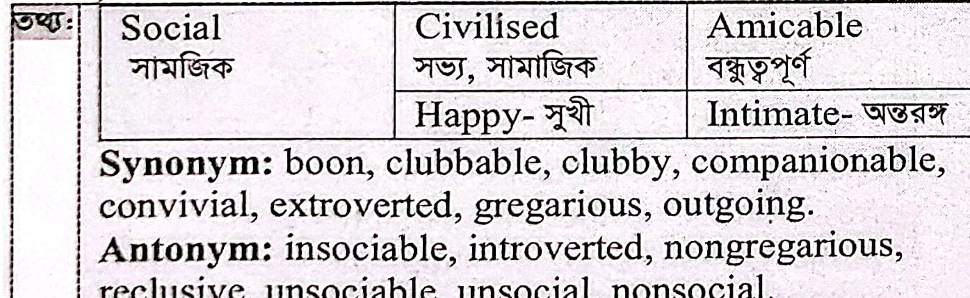 The synonym of the word `social` is-