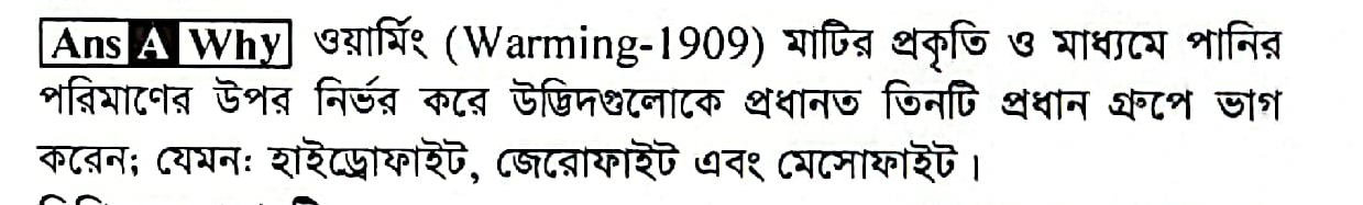 Warming(1909) এর ধারণা অনুযায়ী উদ্ভিদের ক্ষেত্রে কোনটি সঠিক?