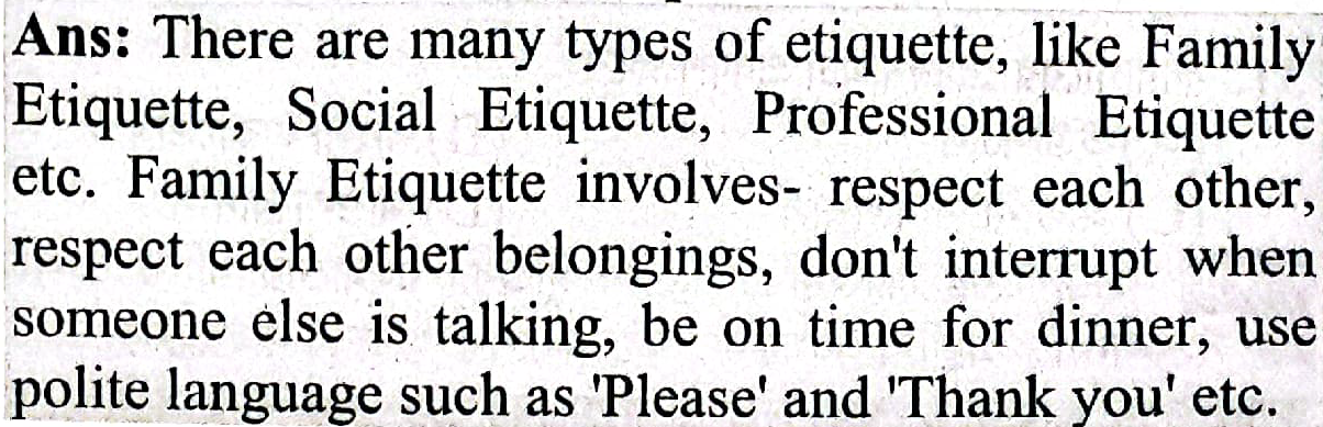 What is the different types of etiquette? What does family etiquette involve?