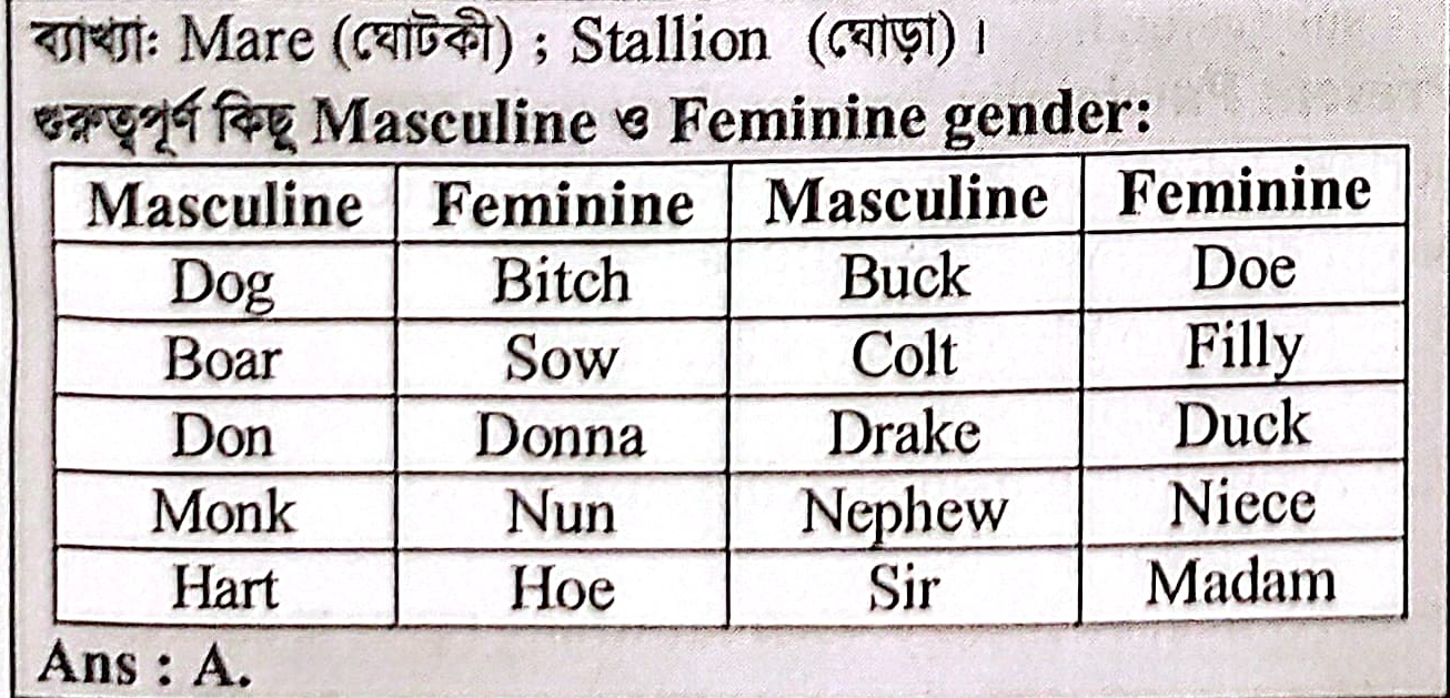What is the masculine gender of `mare`?