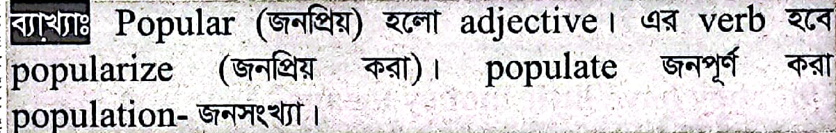 Which one is the verb form of the word, `Popular`?
