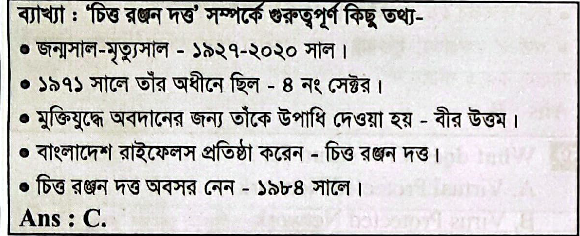 বাঙালি জাতির মুক্তি সনদ হলো (the charter of Freedom for the Bengali nation is)- Option A: ছয় দফা (six point) , Option B: এগারো দফা ( Eleven point ) , Option C: ৭ মার্চ ভাষণ (7th March speech ), Option D: ২১ দফা (21 point), correct answer is: ছয় দফা…