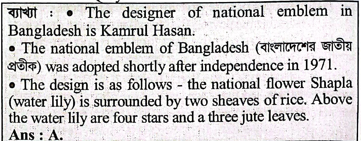 Who is the designer of the national emblem of Bangladesh?